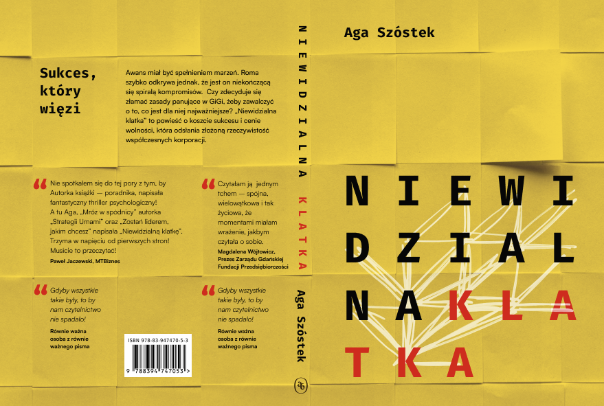 Nie spotkałem się do tej pory z tym, by Autorka książki — poradnika, napisała fantastyczny thriller psychologiczny! A tu Aga, „Mróz w spódnicy”, autorka „Strategii Umami” oraz „Zostań liderem, jakim chcesz” napisała „Niewidzialną klatkę”. Trzyma w napięciu od pierwszych stron! Musicie to przeczytać!
